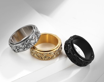 Spinner Rosary Ring Etsy Stainless Steel Wedding Bands Steel Wedding Bands Silver Cat Ring